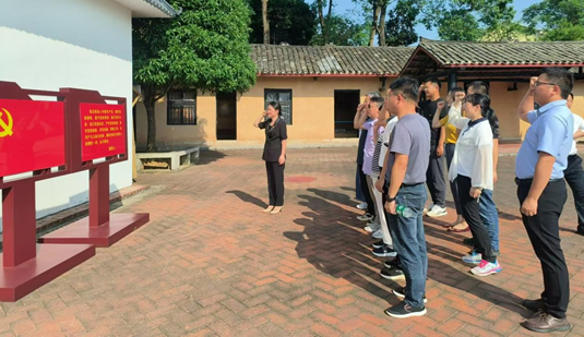 在展馆讲解员的指引下,大家沿着历史足迹,沉浸式感受了1961年刘少奇开展调查研究的情境。在刘少奇调查史实展厅前,大家紧握右拳,庄严肃立,重温了入党誓词。随后,党员同志们重走了“天华调查小道”,从中深切感受了老一辈革命家爱民为民的情怀、实事求是的作风和负责担当的态度。