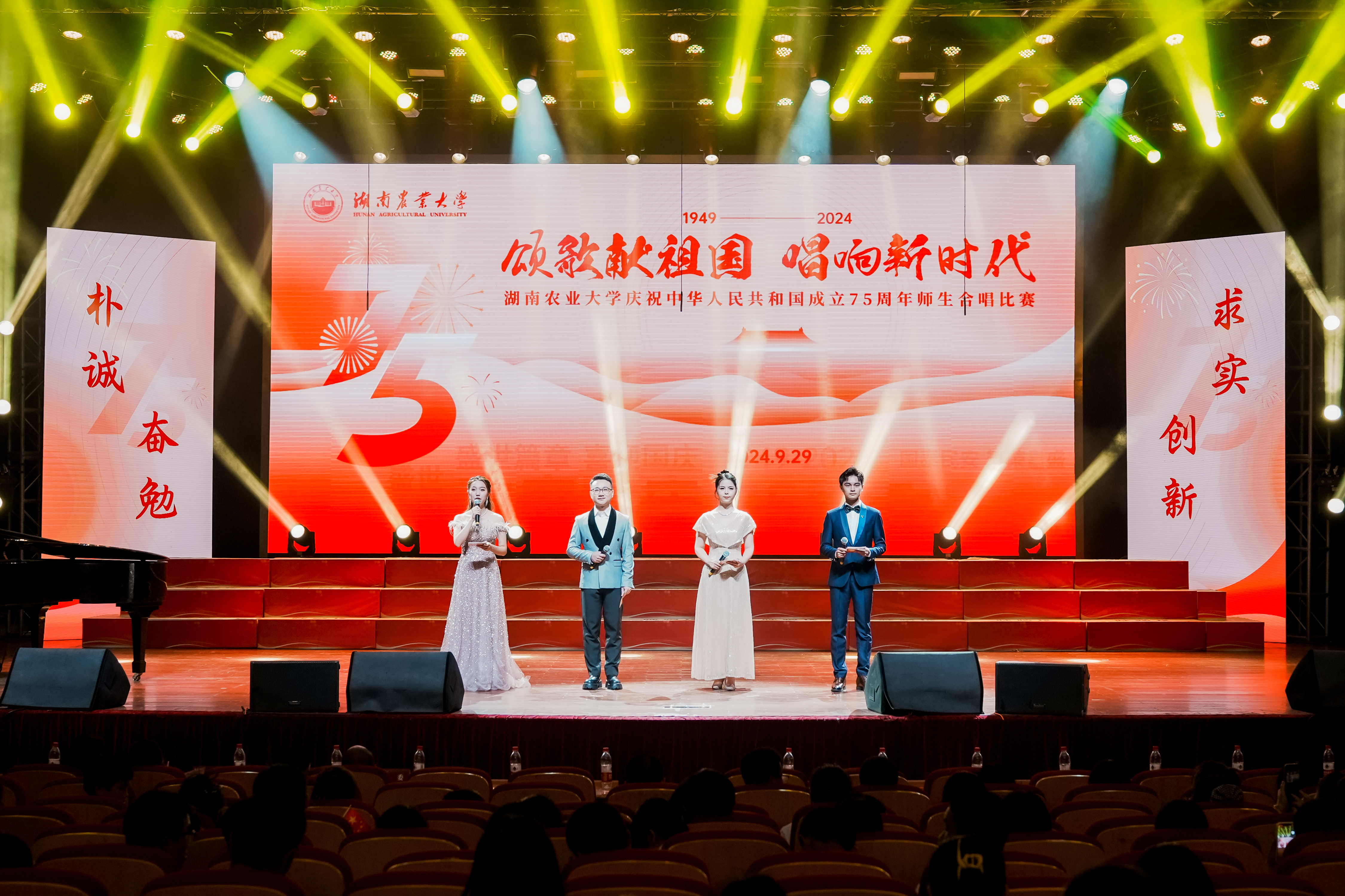 比赛在政工代表队带来的《领航》中拉开了帷幕,恢弘激昂的旋律,大气磅礴的歌声深情讴歌了中国共产党为中国人民谋幸福、为中华民族谋复兴的初心。27个代表队依次登台亮相,各支参赛队伍精神饱满、朝气蓬勃,各队选手默契配合、深情演绎,以炽热的情感、高亢的歌声、整齐的队列、昂扬的气势引吭高歌,向祖国母亲表达最美好的祝福。《没有共产党就没有新中国》《向往》《在太行山上》《唱支山歌给党听》《祖国颂》《爱我中华》等旋律响亮回荡,一首首承载时代记忆的红色经典、一曲曲激昂人心的传唱佳作展现了农大师生凝心聚力、砥砺前行的精神风貌,抒发了广大师生对党和祖国的无限热爱和厚重情怀。各单位表演形式多样、内容丰富,完美地将朗诵、说唱、领唱、乐器、情景表演等融入其中,整场演出鲜活生动、精彩纷呈、鼓舞人心、催人奋进,赢得了现场观众阵阵掌声,掀起一次又一次的高潮。
