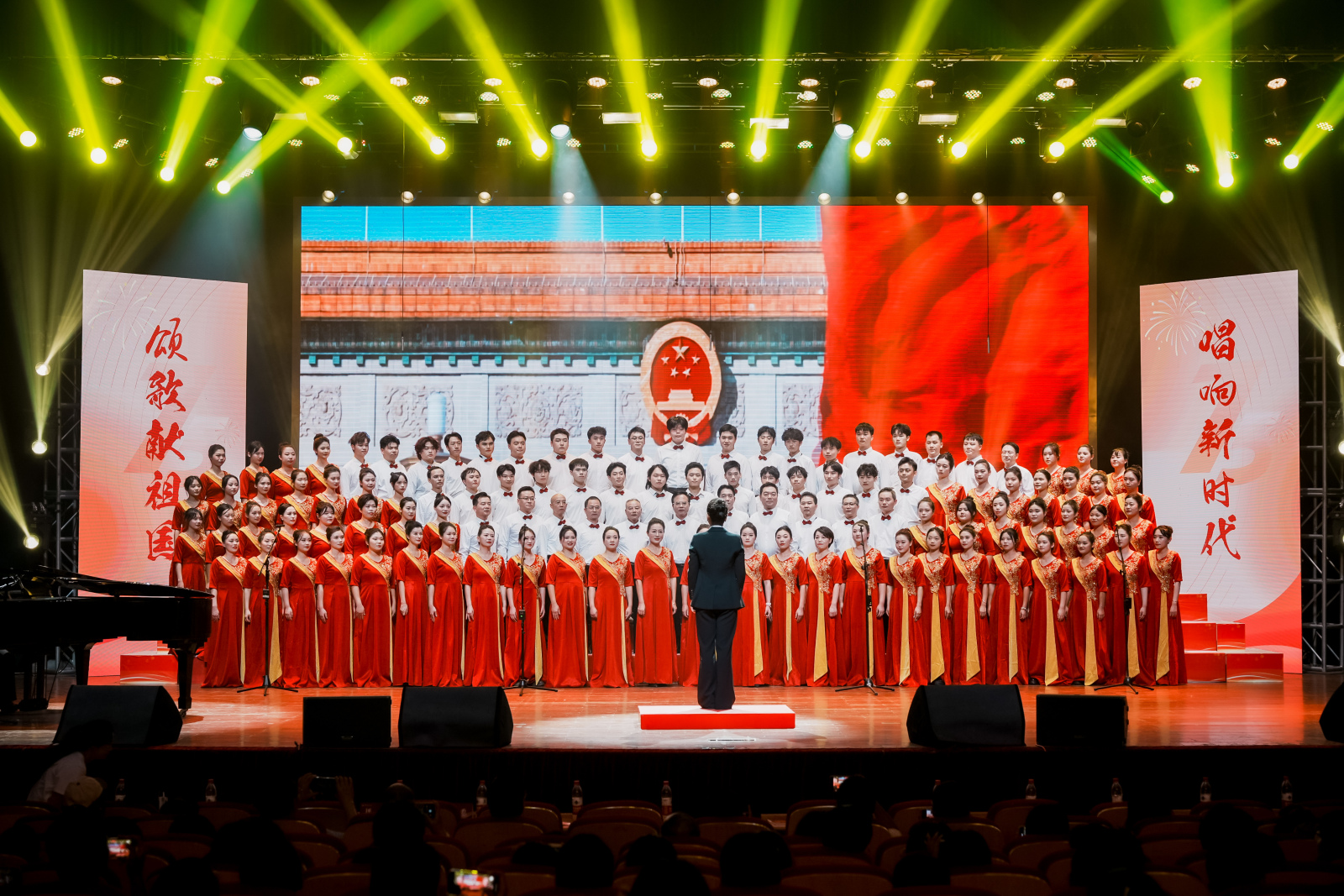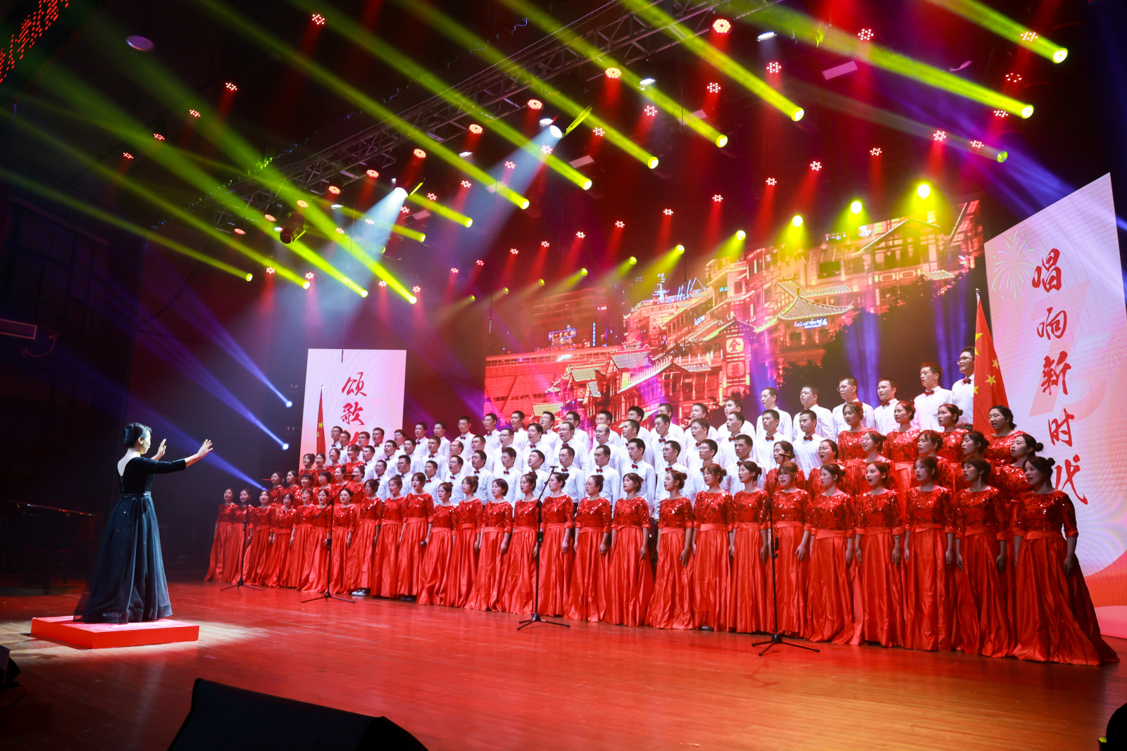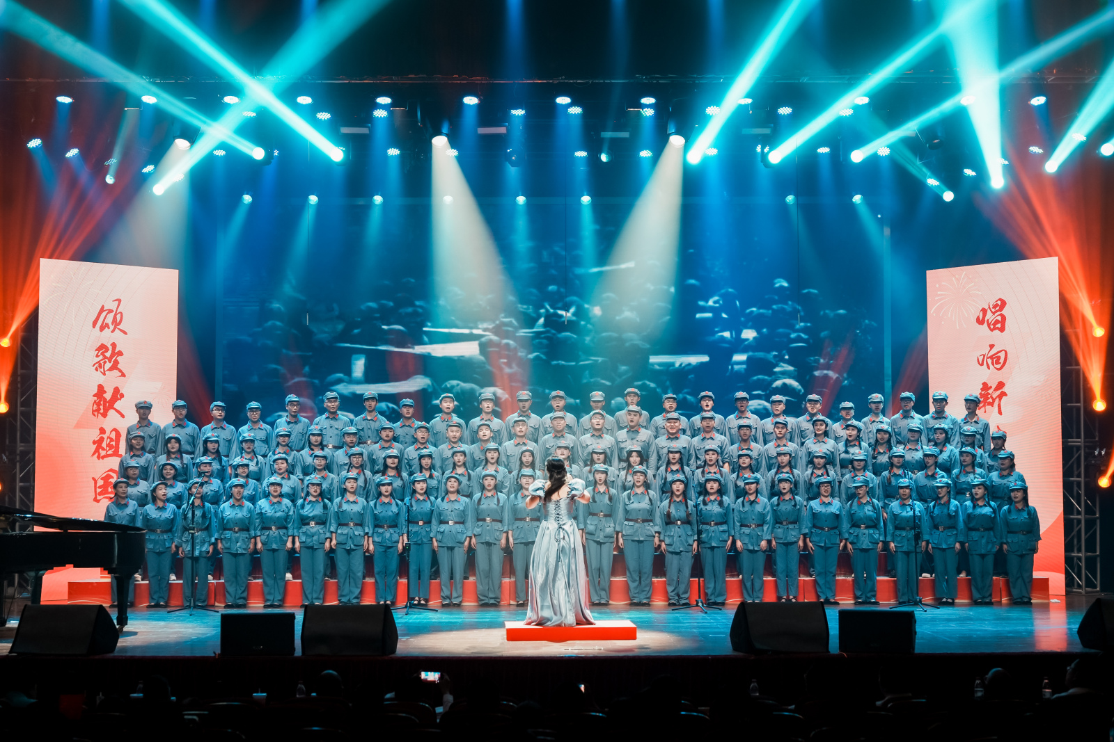 本网讯(校工会 张晶)七十五载辉煌路,歌声嘹亮颂中华。9月29日晚,由校工会、校团委联合承办的“颂歌献祖国 唱响新时代”——学校庆祝新中国成立75周年师生合唱比赛在大礼堂激情唱响。校党委书记陈弘,全体校领导与师生同台演出,吟唱难忘的岁月,演绎时代的激情,共同歌唱伟大祖国的繁荣富强。