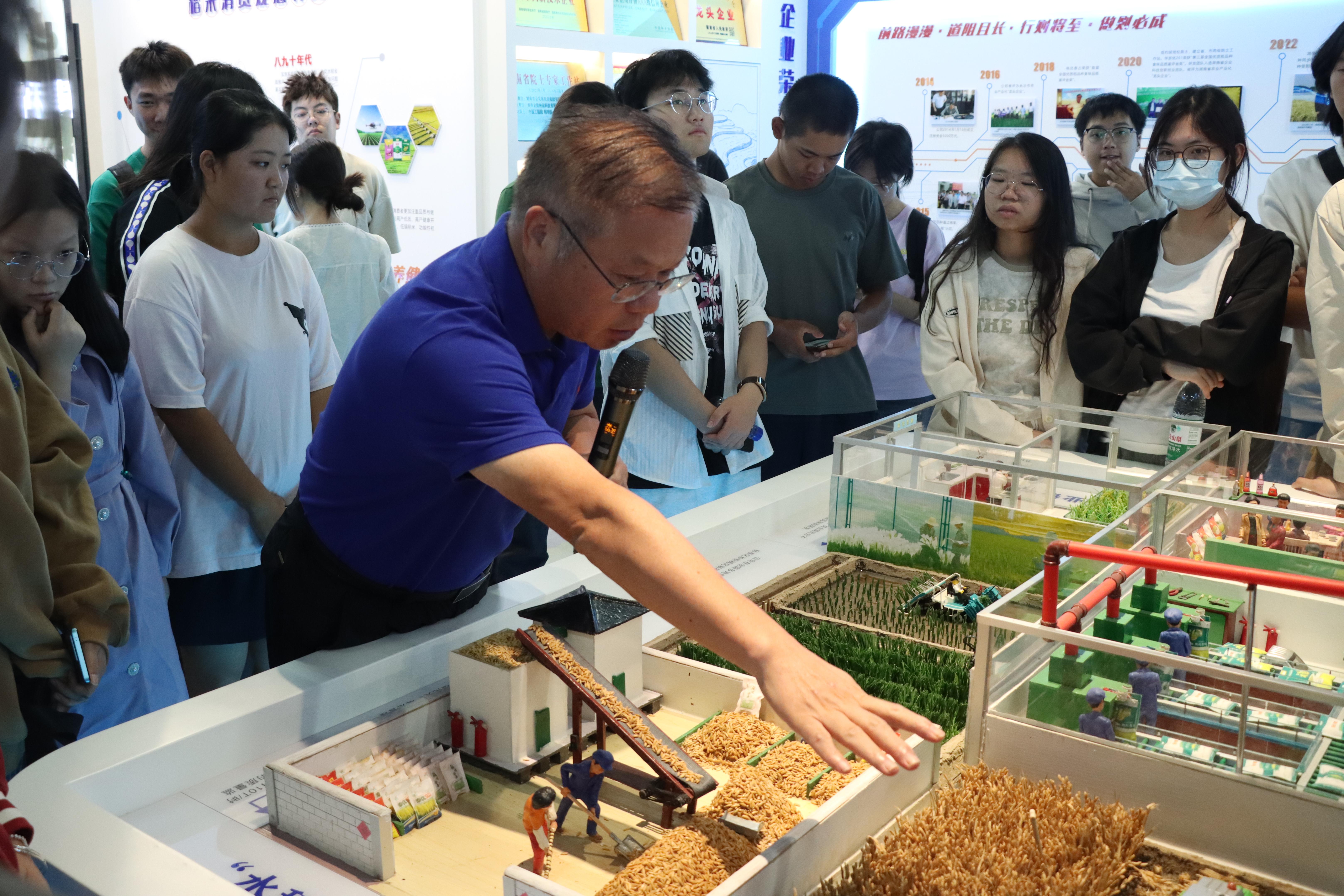 在金健种业公司本部,学生们参观了办公区、企业展示厅、科研实验室,了解了种子从研发到销售的完整流程。王教授在现场与学生们分享了企业经营管理过程中的先进经验、讲解了现代种子企业的主要经营模式、分析了种业市场的发展趋势,特别就企业如何利用大数据和现代营销技术应对全球种子市场竞争阐释了个人的独到观点。他鼓励学生们用长远的眼光看待行业发展,指出“种子企业不仅要在生产上创新,更要在经营管理上有系统思维”。