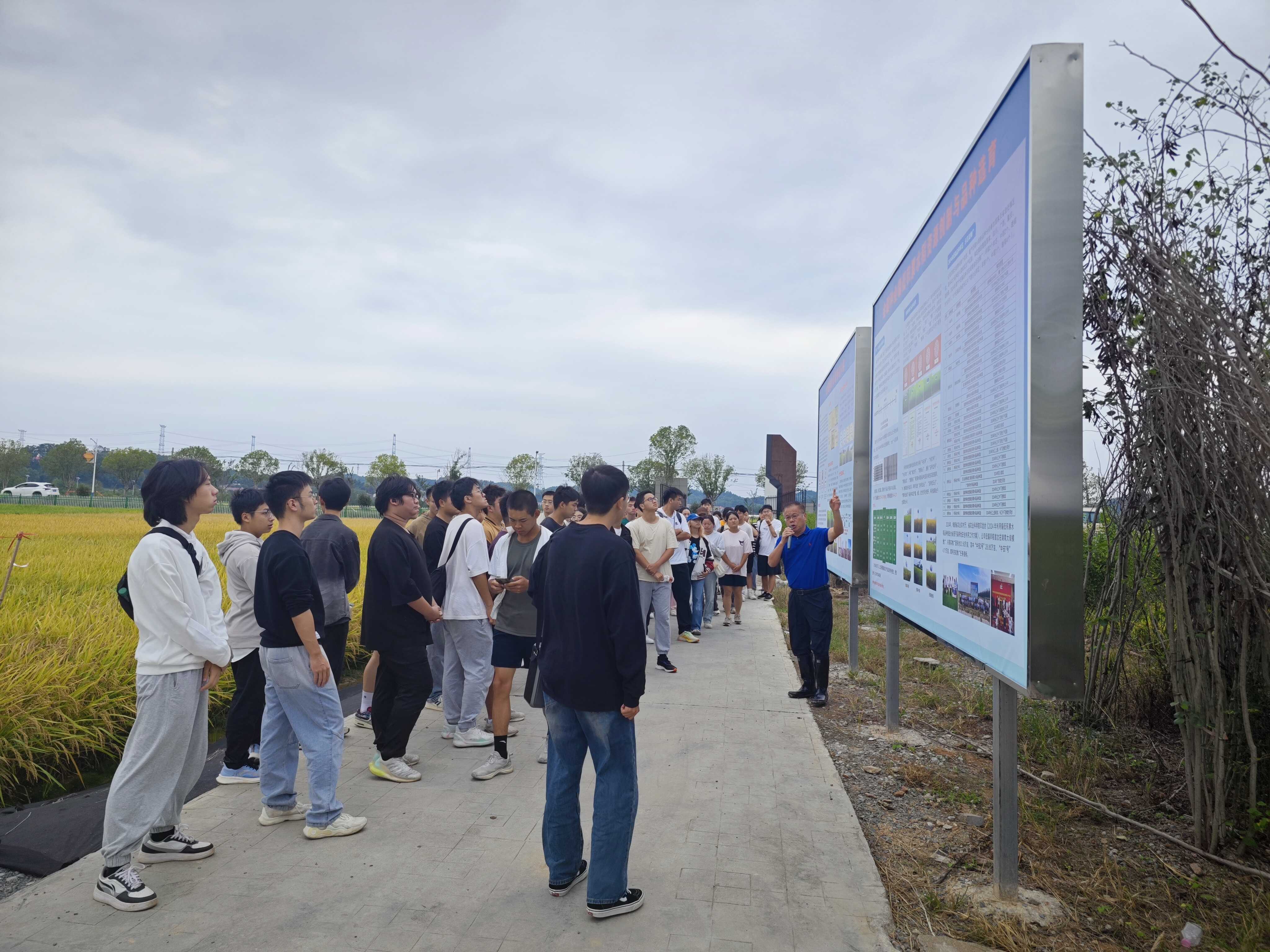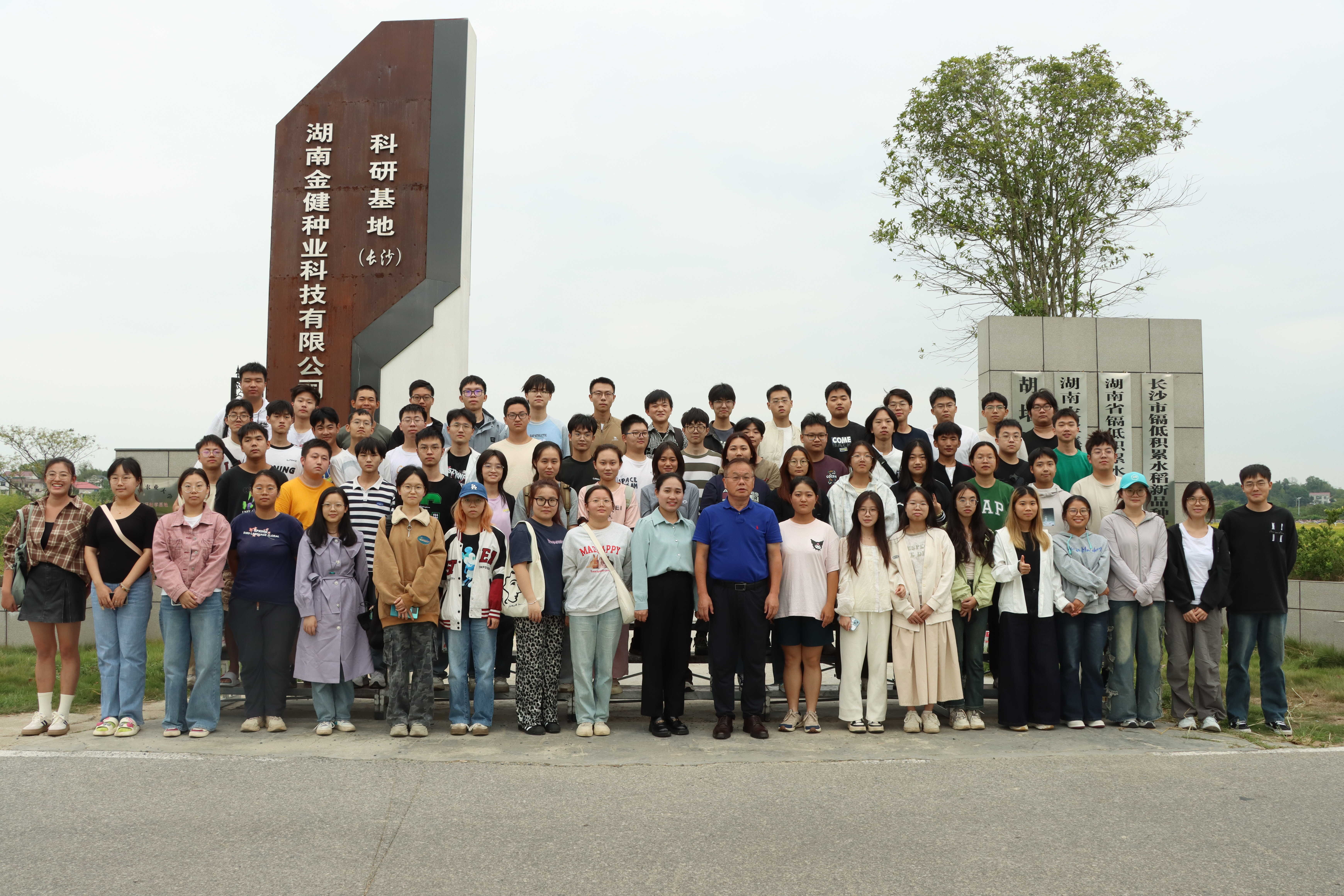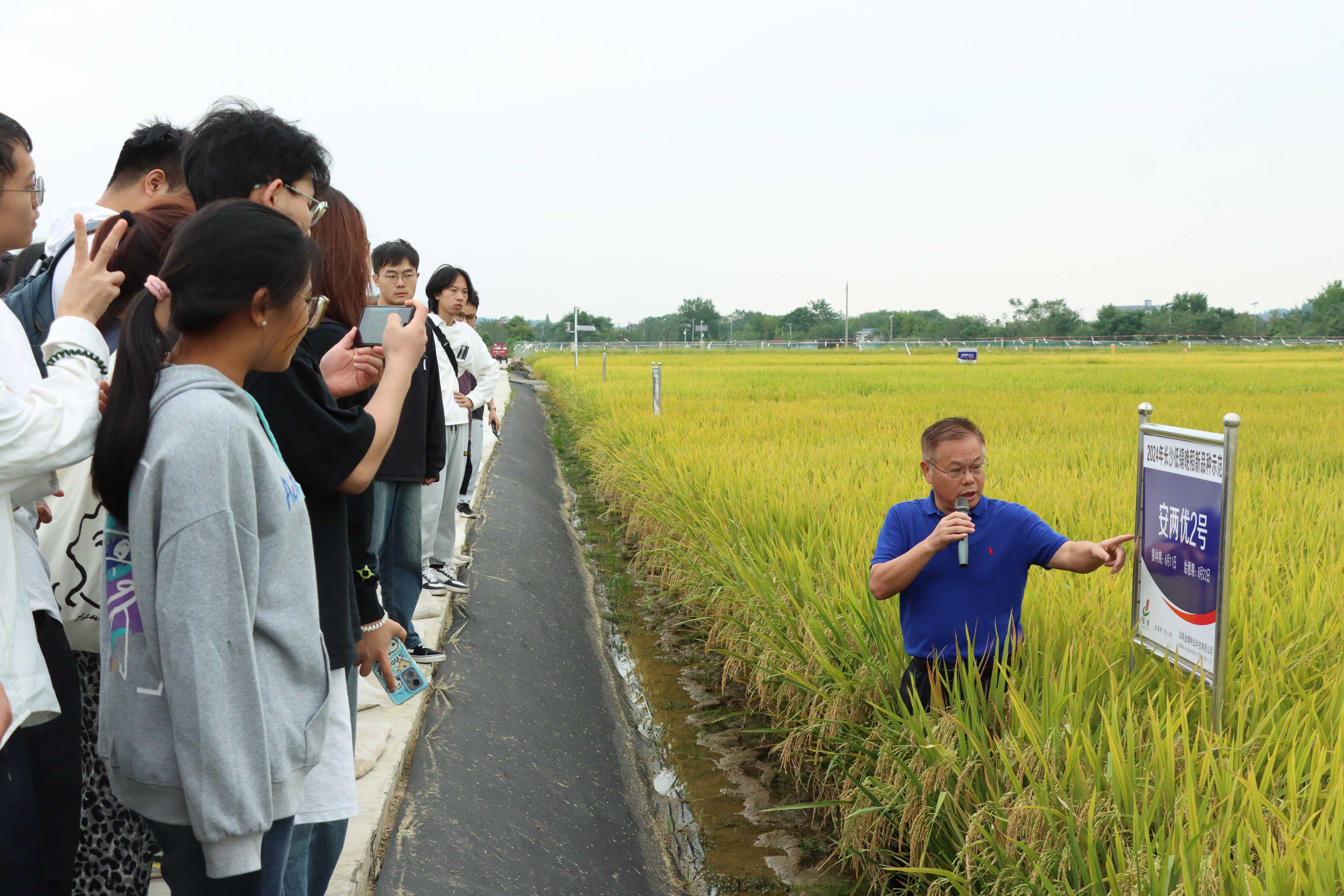 本次实践教学的最后一站来到位于长沙县路口镇麻林村的金健种业科研基地。这里集成了金健种业最前沿的育种材料和核心品种,王教授带领学生深入田间地头,观察各品种的田间表现。他以独特的教学方式,将枯燥的理论知识与田间实地操作紧密结合,帮助学生理解种质资源的创新、杂交育种的原理和选种技术的难点。他还特别强调了育种精神的传承:“每一粒种子的背后,都是育种专家们无数次的实验和筛选,科学育种是一项长期积累的工作,是一门需要耐心与毅力的学科,未来你们不仅要掌握技能,更要坚守育种人的初心。”