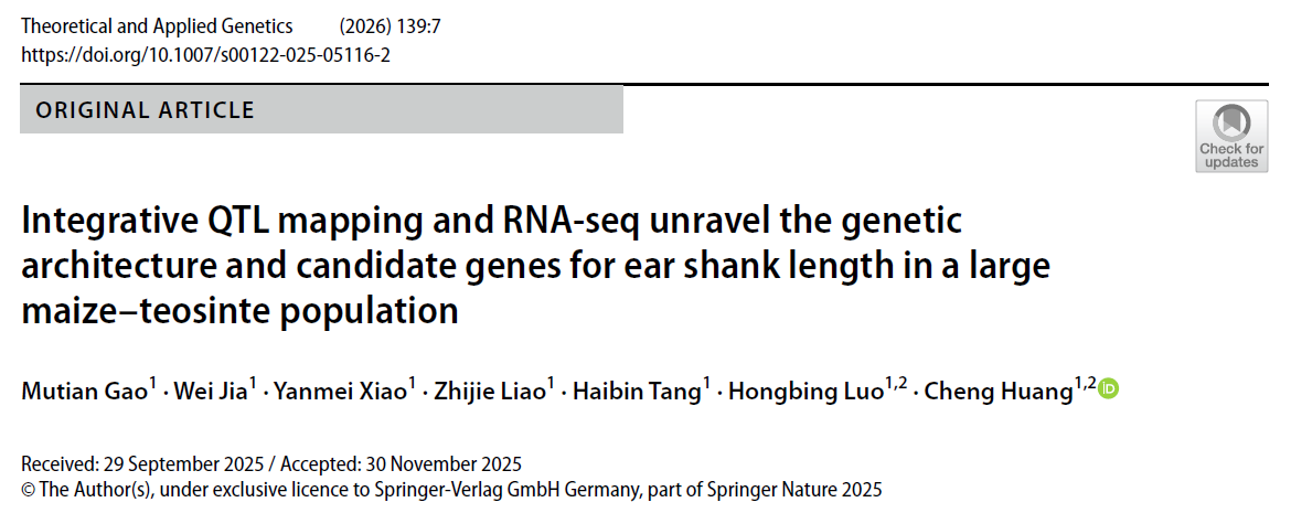 Gao, M., Jia, W., Xiao, Y. et al.Integrative QTL mapping and RNA-seq unravel the genetic architecture and candidate genes for ear shank length in a large maize–teosinte population. Theor ApplGenet 139, 7 (2026). https://doi.org/10.1007/s00122-025-05116-2