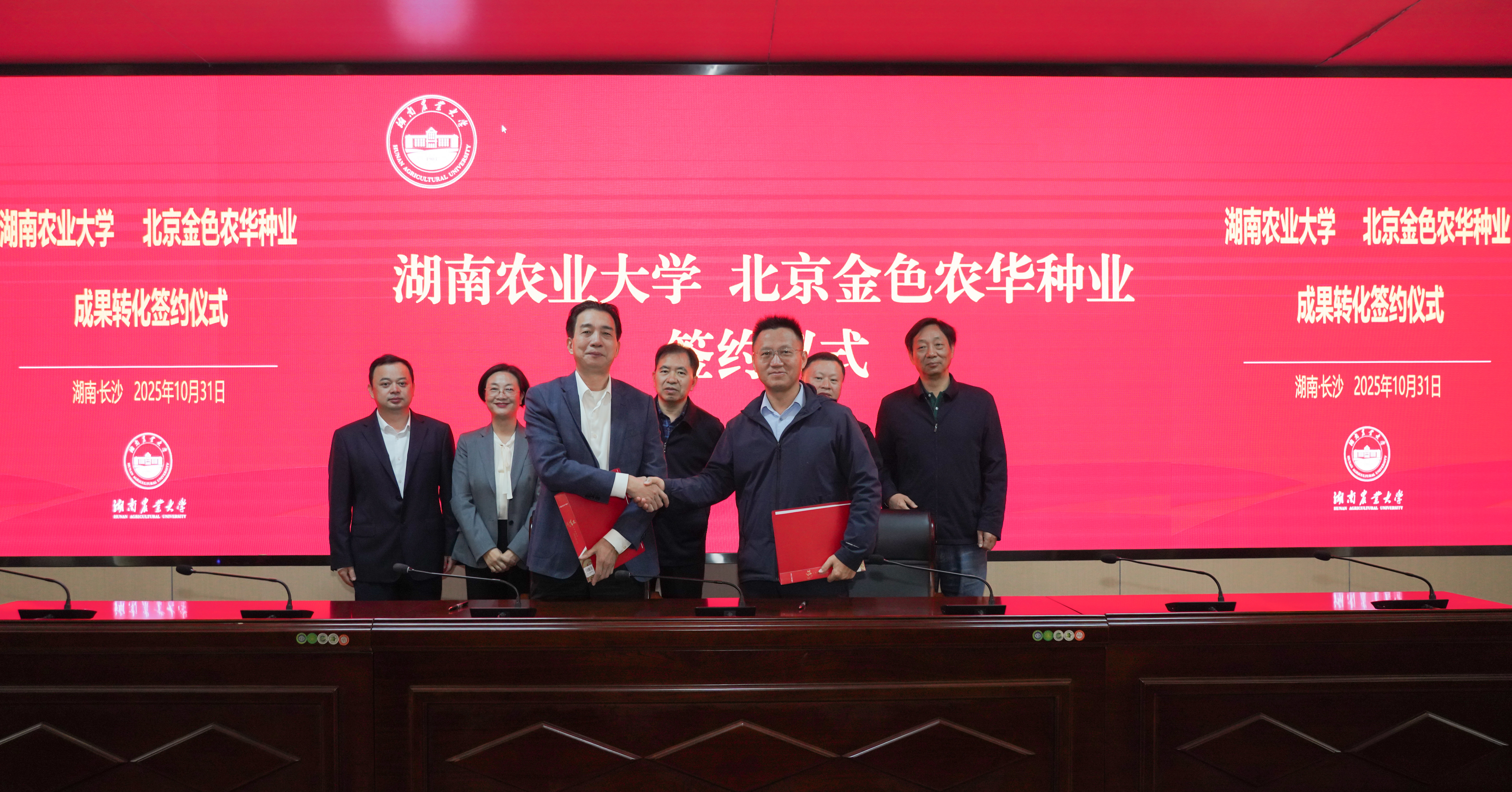 我校党委副书记、校长、中国工程院院士邹学校,大北农集团创种科技总裁阳庆华,北京金色农华种业科技股份有限公司总经理林勇,湖南女子学院党委书记、农学院二级研究员段美娟,湖南杂交水稻研究中心副主任、二级研究员袁定阳,我校农学院院长吴俊出席会议。我校党委副书记陈光辉主持。