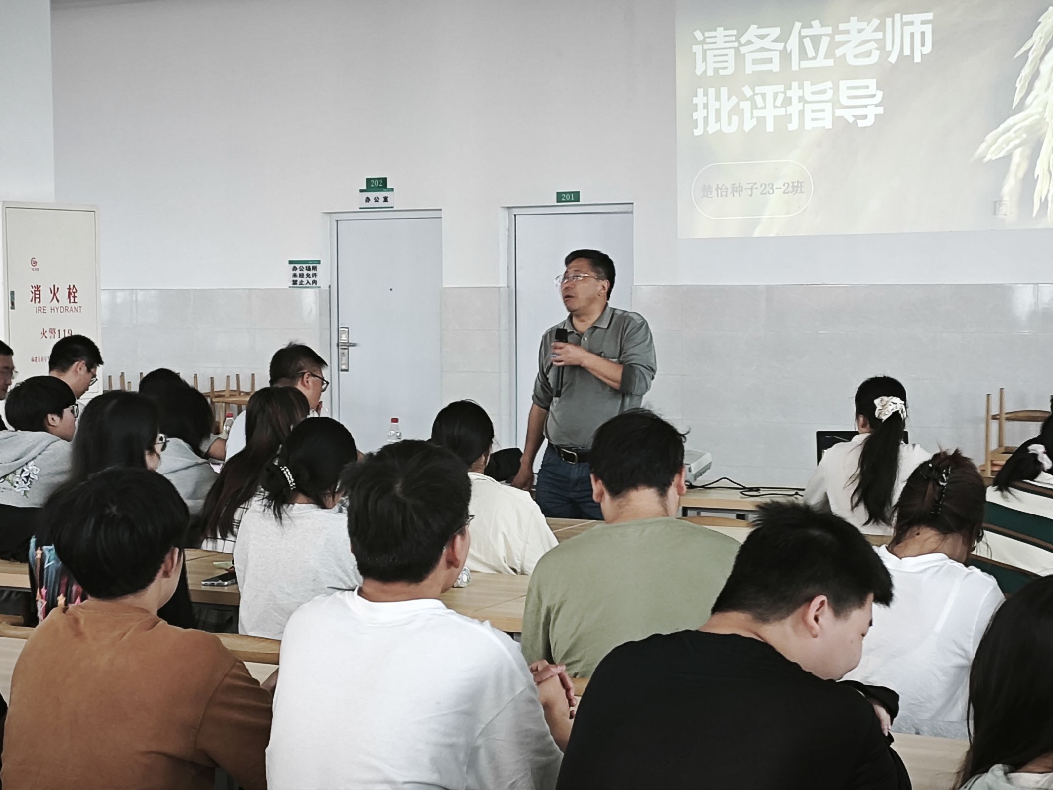 最后,刘雄伦教授提出几点要求:第一,各班需进一步完善实验方案。第二,推进实验具体实施,加快对秧苗的处理。第三,做好符合实验各项要求的准备工作,落实实验方案,加快分地工作。易镇邪副院长从班级实验的重要性进行强调:班级大实验作为浏阳“六边”实习的重要组成部分,构建了一个作物学技能竞赛体系。并要求同学们不可掉以轻心,认真对待下次的作物学生产技能竞赛以及最后班级研究成果的汇报,改进好实验方案,完成工作上的安排。熊兴华教授指出:班级开题报告要做到公开透明,各班同学要全面了解其中内容。各班班长须与基地学生会的核心部门做好协调,做好划地工作与肥料的计算。