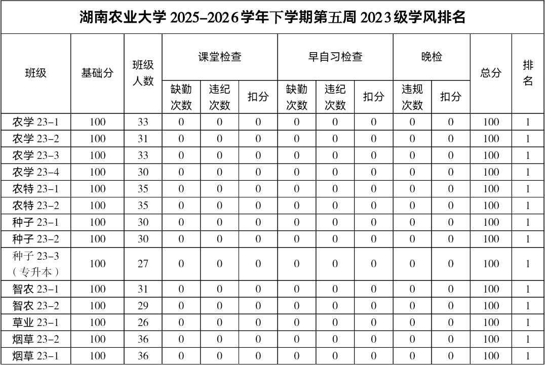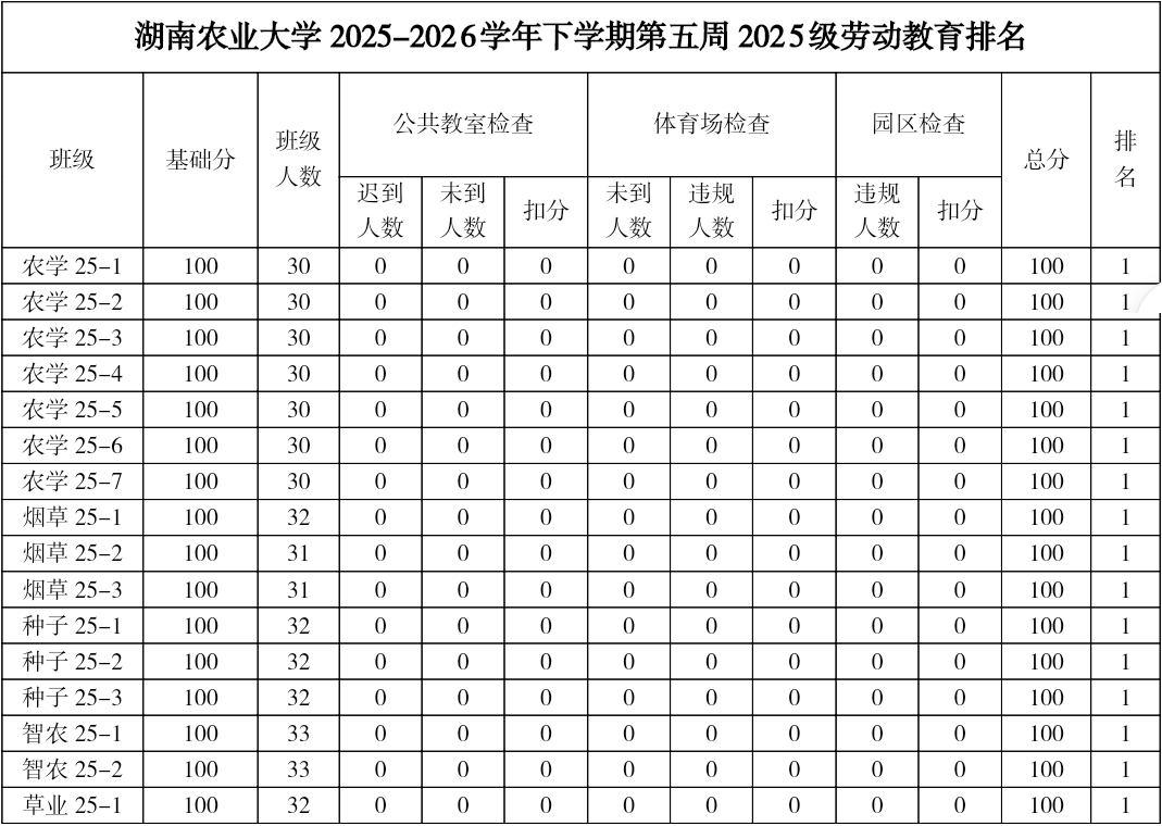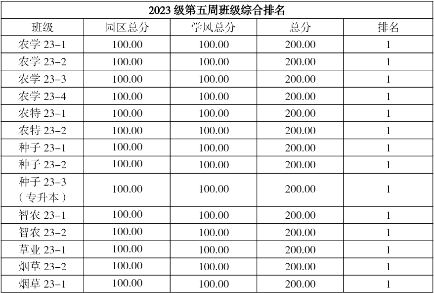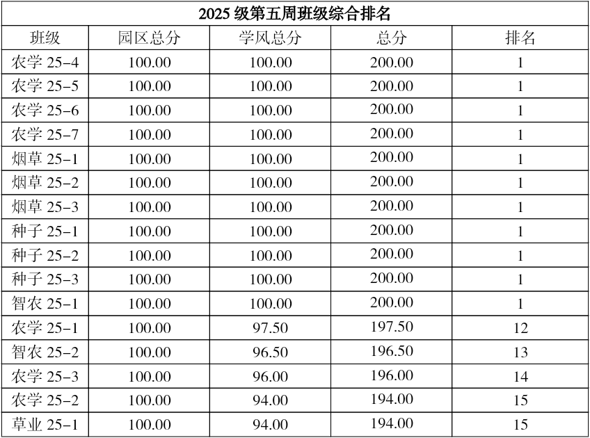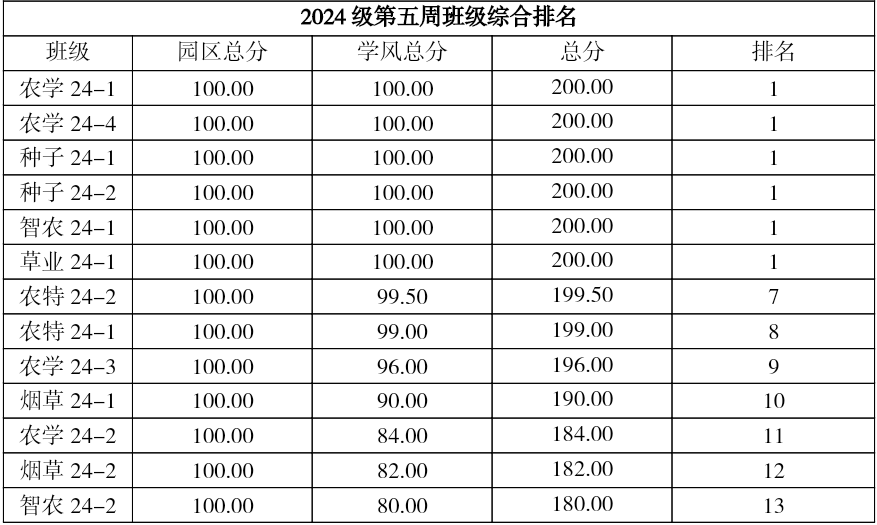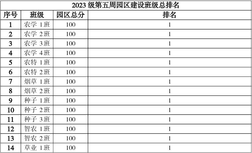 第五周各年级表现都很优秀,卫生情况良好,希望各年级继续保持优良作风,切实加强学院园区建设,共创美丽校园。