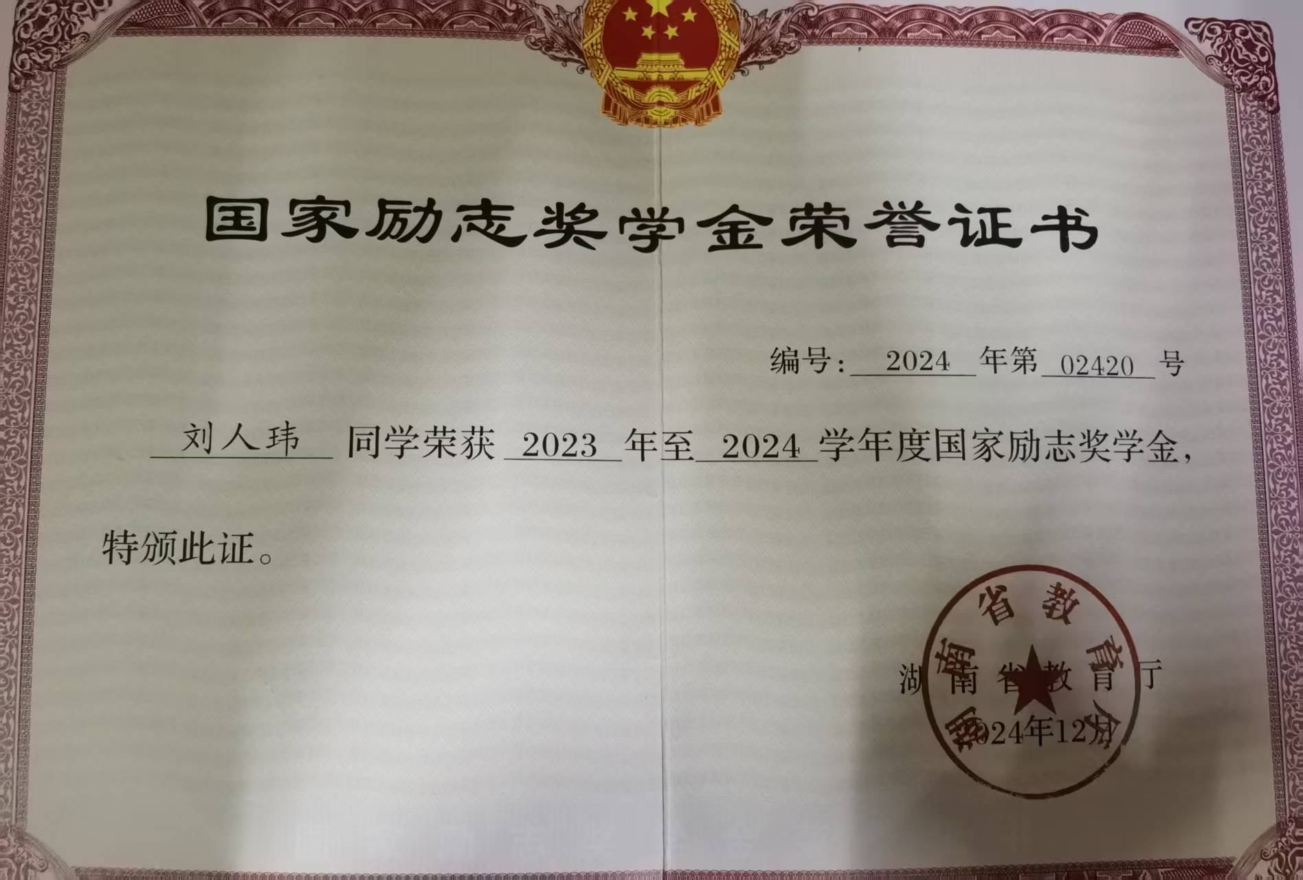 获2023-2024学年国家励志奖学金、2024-2025学年国家励志奖学金、2023学年新生合唱比赛二等奖、农学院歌手大赛季军、农学院歌手大赛最佳演绎奖、2024学年新生合唱第七名、师生合唱第一名、2025级新生军训优秀助理班主任。