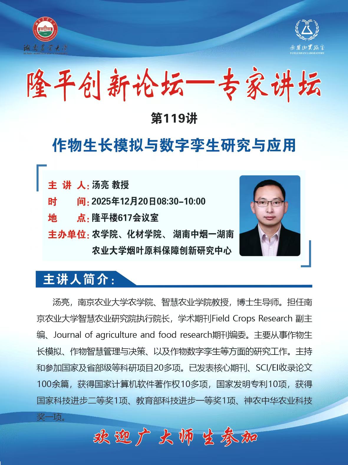 隆平创新论坛—专家讲坛第119讲:作物生长模拟与数字孪生研究与应用