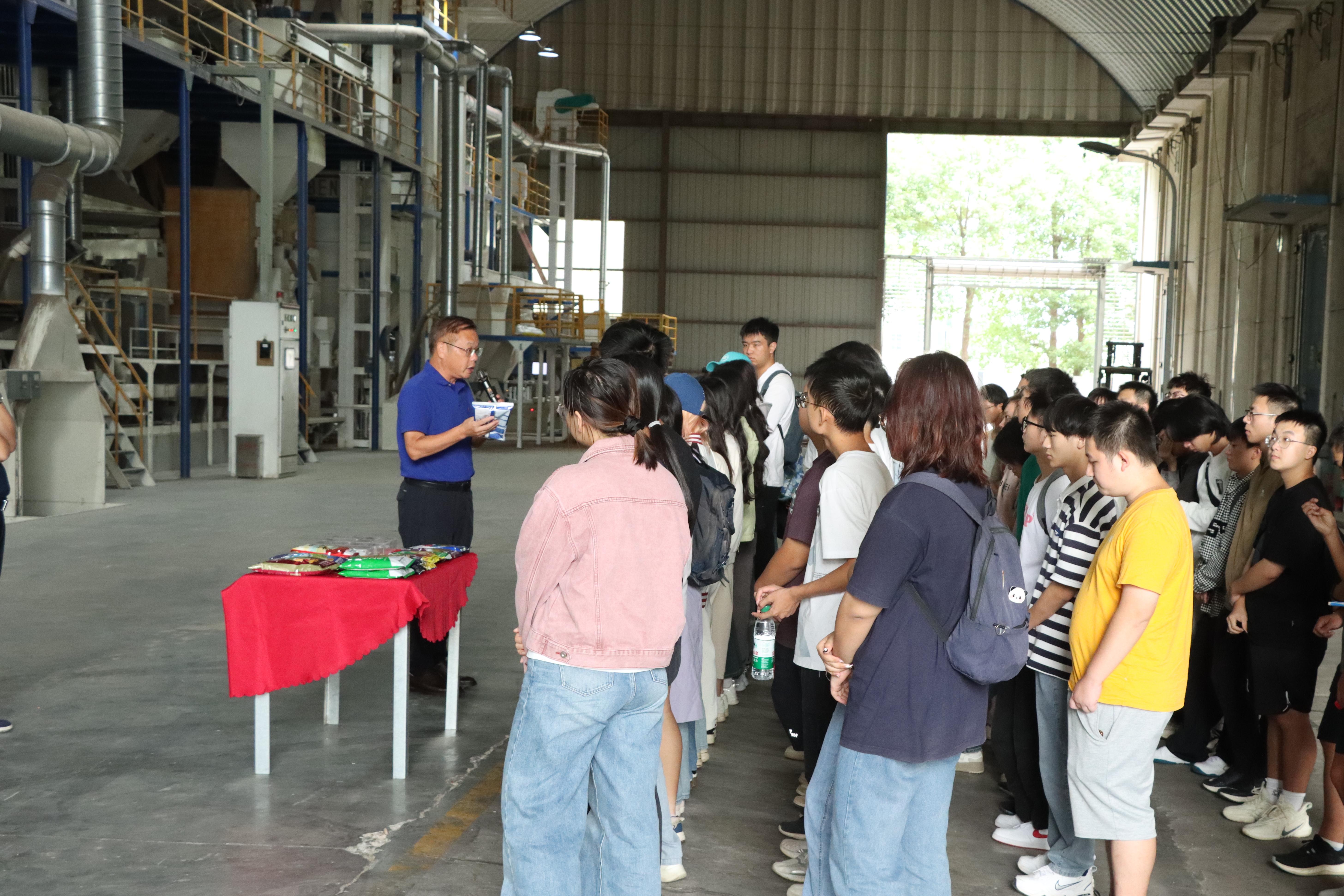 在加工仓储车间,学生们近距离接触到了现代化种子加工仓储管理系统。仓储部负责人为学生们详细演示了种子入库、加工、仓储、出库和各环节质量检测的过程。王教授亲自向学生们介绍了各类加工设备,并结合理论知识讲解了种子在加工、存储和运输过程中的关键质量控制点。通过实地观察和互动,学生们对种子仓储管理有了更直观的认识。“这些环节看似简单,但都直接影响种子的质量与市场竞争力。管理好了仓储,才能确保种子到达市场时依然保持优质。”王教授边讲边指导学生们记录和分析数据,手把手教导每个操作细节。