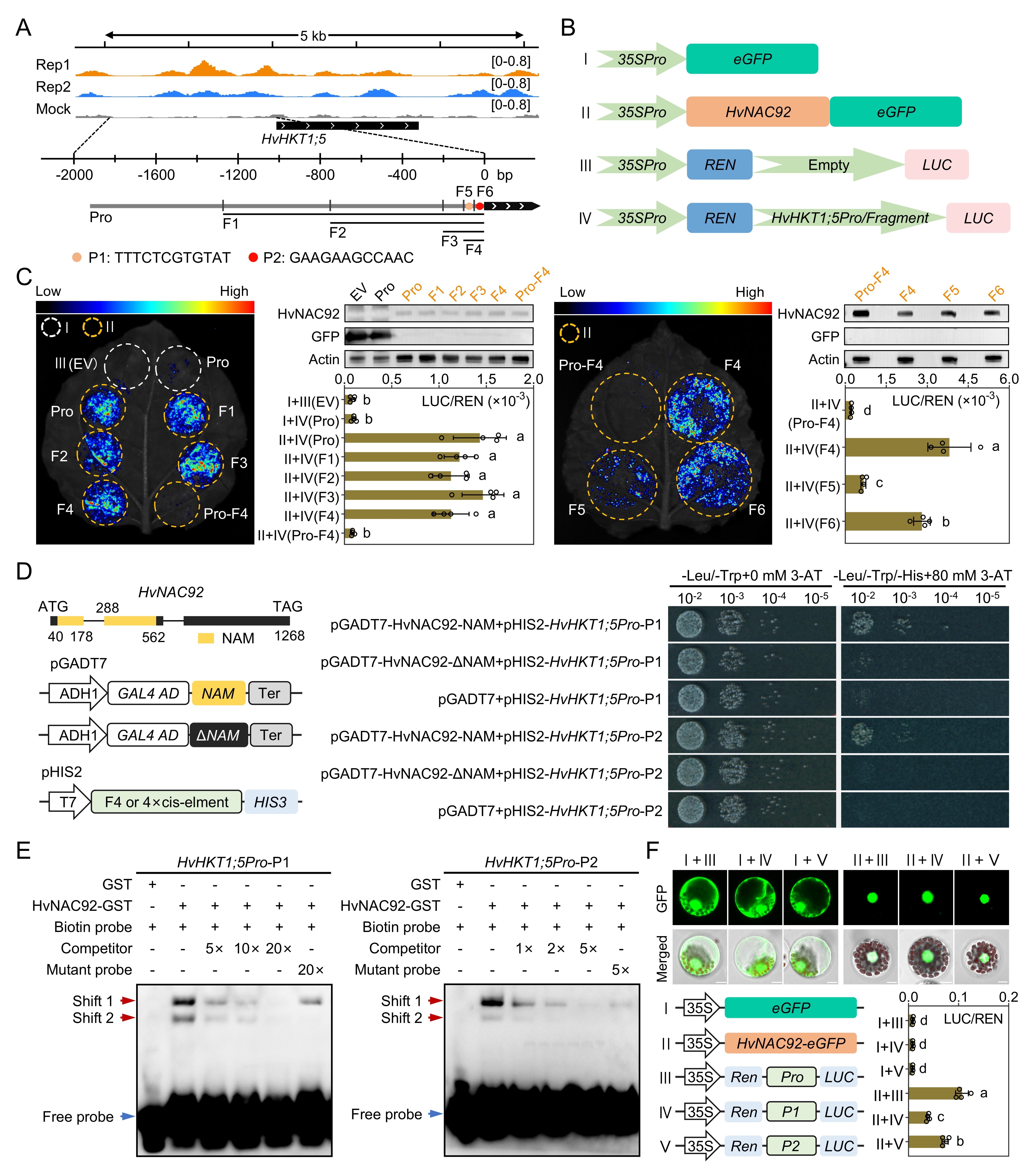 图2. HvNAC92结合HvHKT1;5启动子激活其表达