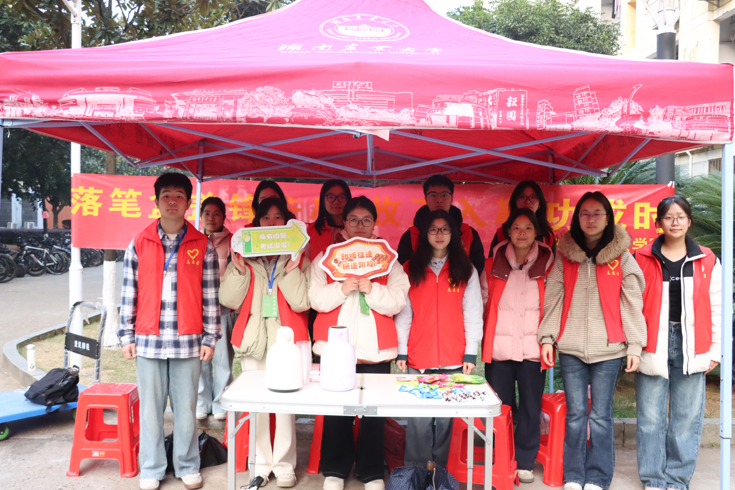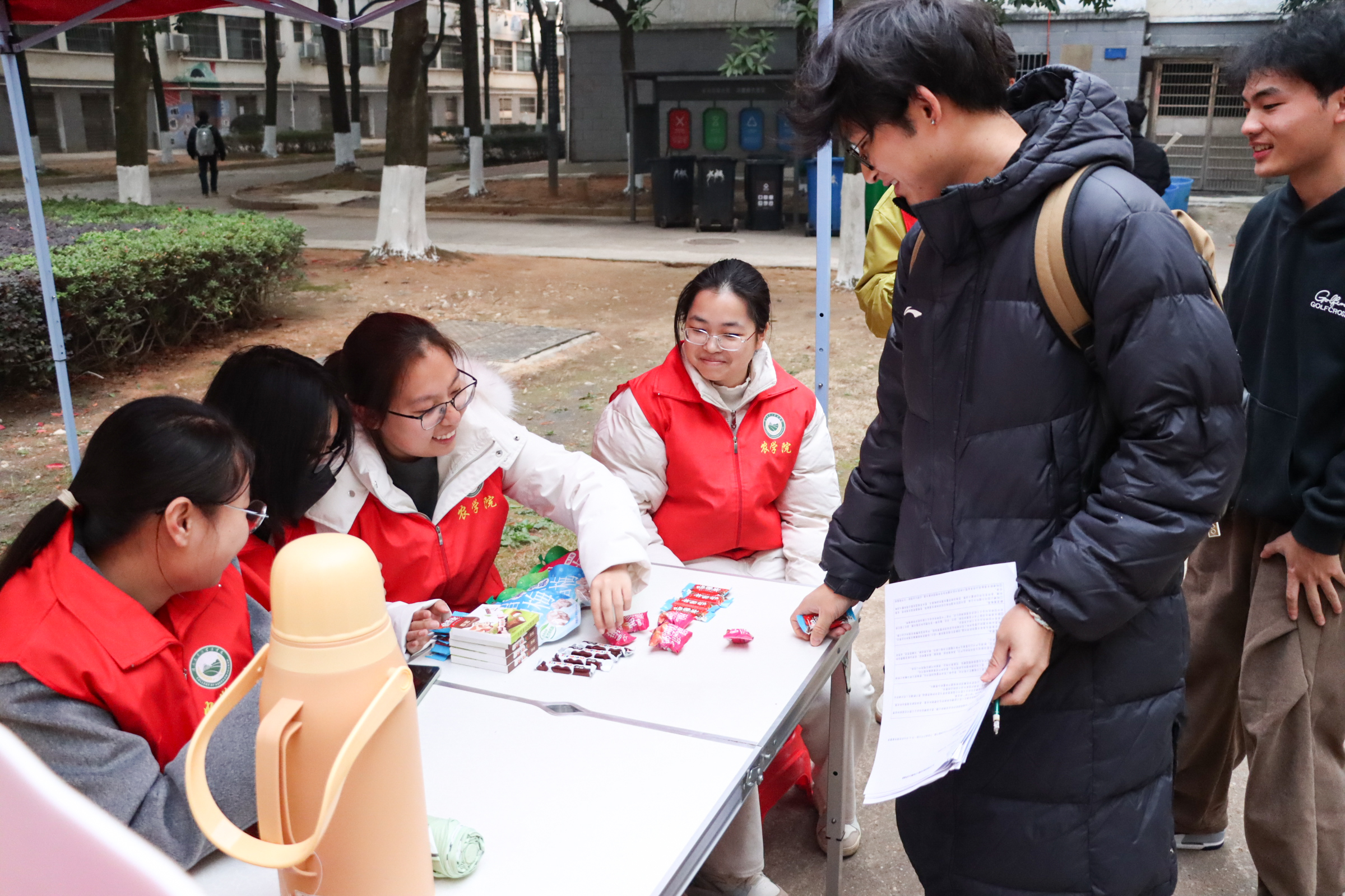 红色的帐篷在寒风中格外醒目,志愿者们忙碌的身影穿梭其间。精心准备的热饮驱散着冬日的凉意,香甜的糖果传递着甜蜜的期许,还有那些创意满满的应援牌——“梅有难题,考试溜溜”“甜暖征途,研途凯旋”,每一句都藏着农学院独有的巧思与心意。