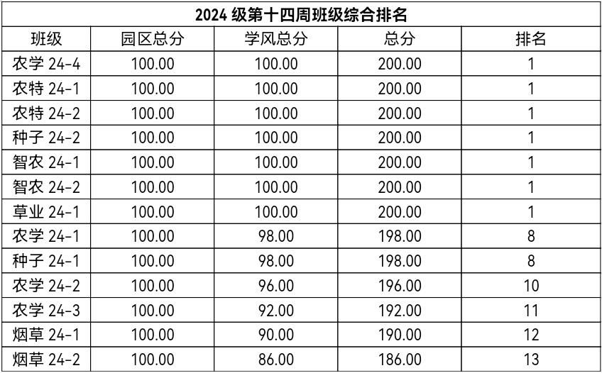 Part 3 | 第十四周班级综合排名