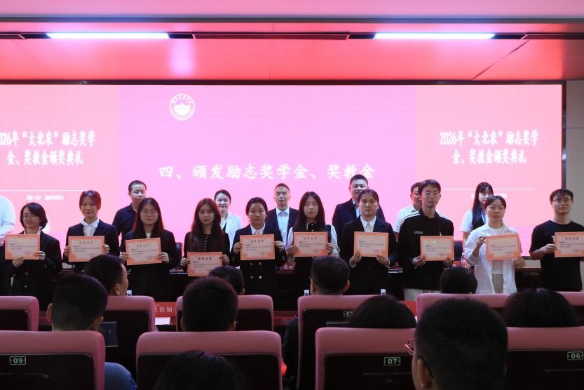 全体参会人员现场观看金色农华宣传片。彭可为宣读了2026年度beat365在线体育官网大北农奖教金、励志奖学金获奖名单。与会嘉宾依次为获奖师生颁发荣誉证书。